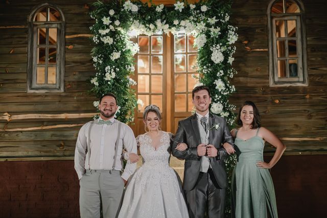 Desejamos todo amor e felicidades para vocês. Que esse dia seja além do que vocês sonham, e que seja um casamento abençoado e cheio de conquistas. Amamos vocês!